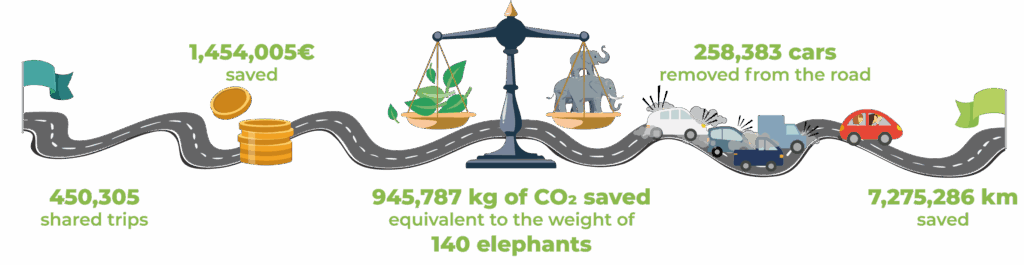 The numbers also tell a story of great efficiency for the logistics sector. Its employees, making 23,419 trips, managed to avoid 111 tons of CO₂ emissions and save €170,000. This demonstrates the strategic value of carpooling for “long-distance commuters” working in hubs and logistics centers, where each shared trip generates an even greater impact.